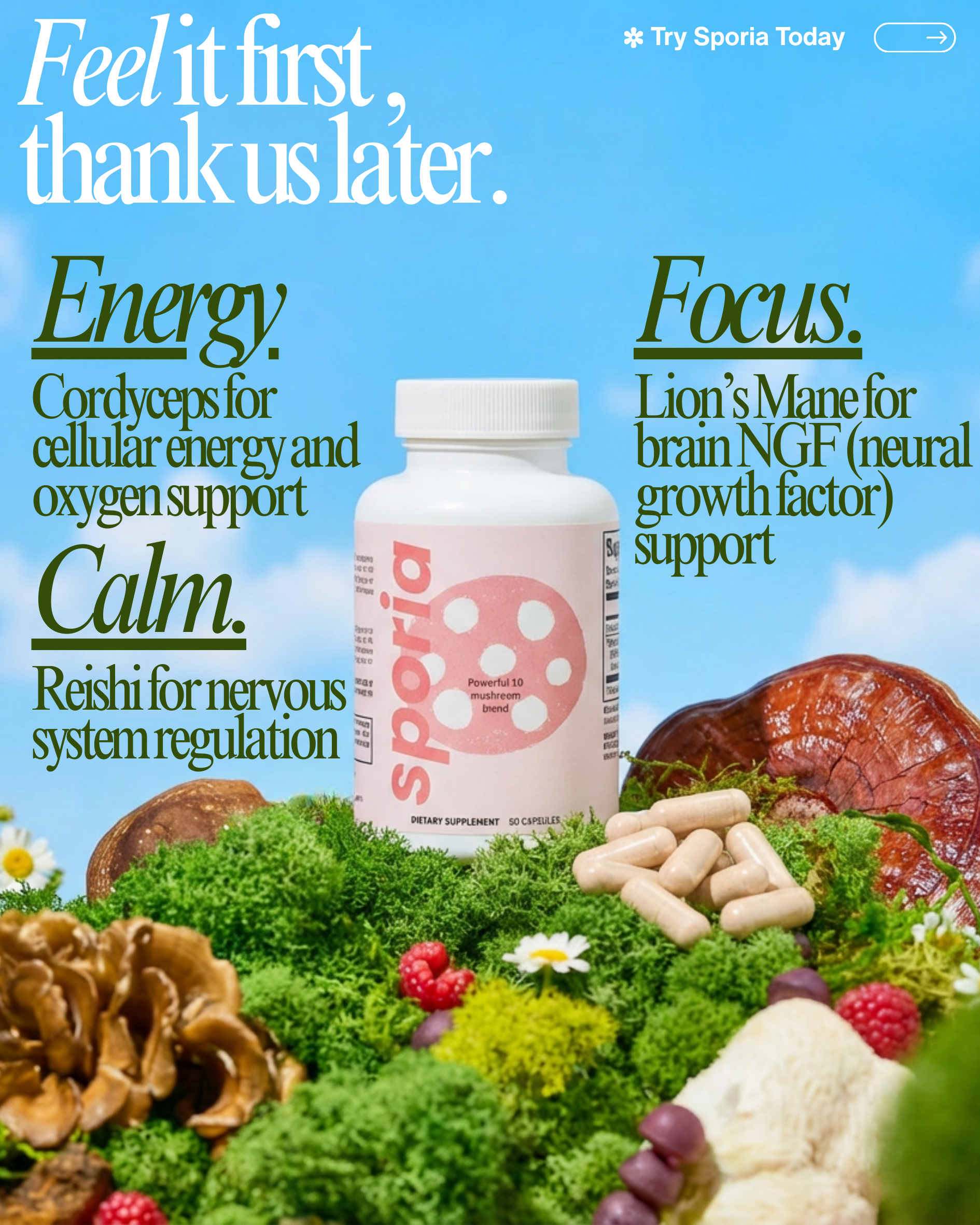Sporia combines 10 functional mushrooms, all serving unique purposes while providing multi faceted benefits. From sleep & recovery to focus and clarity all the way to energy and anxiety, Sporia has you covered.